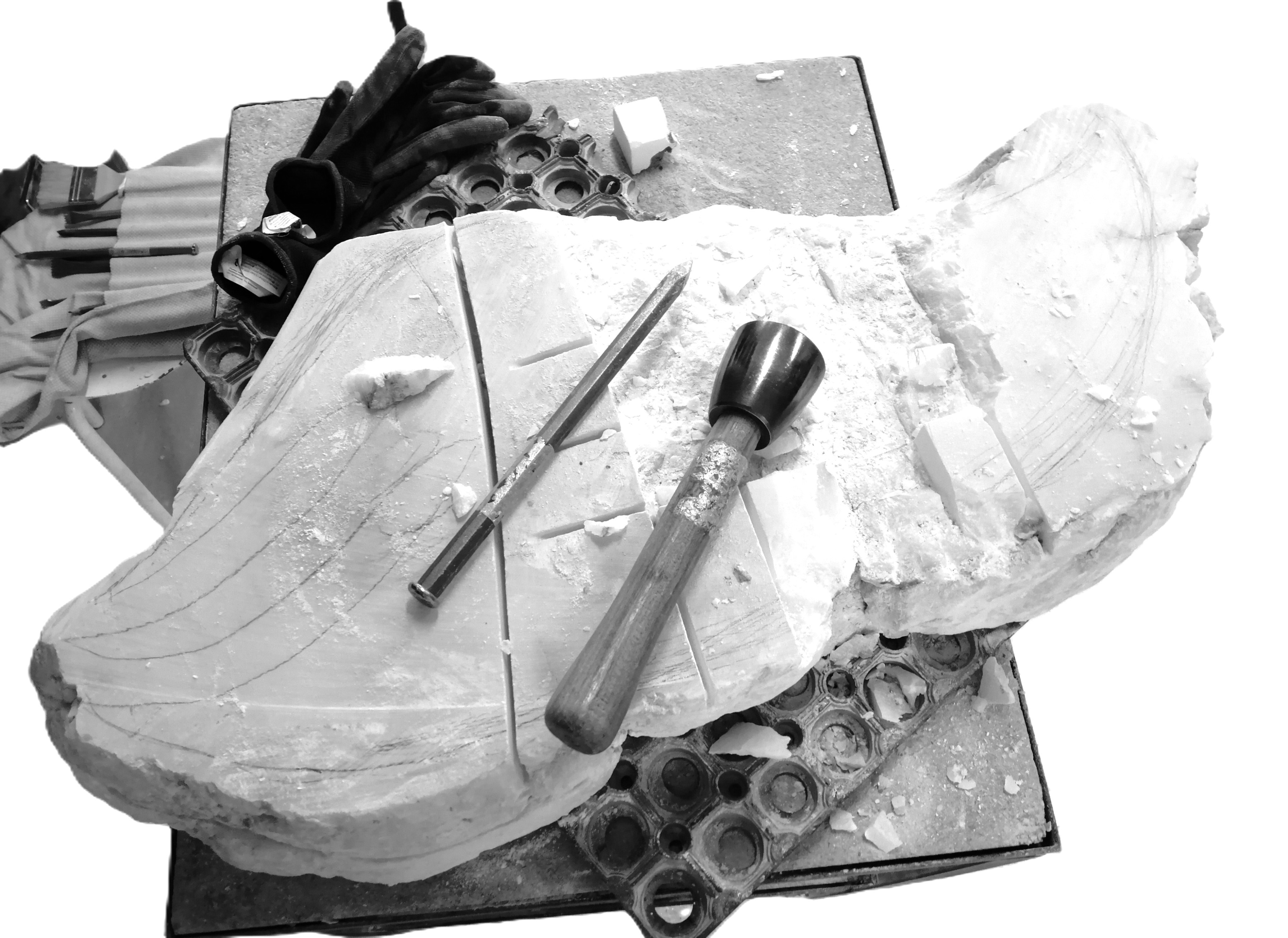 Je travaille surtout la pierre, et essentiellement en taille directe. La taille directe est une technique de sculpture par laquelle le sculpteur taille directement un bloc brut de pierre, de bois, à l’aide de divers outils pour en faire émerger la forme. Ce n’est pas une reproduction par rapport à un modèle. Dans le cas contraire, il s’agit de la taille avec mise au point. Mes sources d'inspiration, mes créations, partent souvent d'un mot. J'essaie de le transcrire dans la matière pour faire naitre une histoire, permettre à l'imagination de vagabonder.